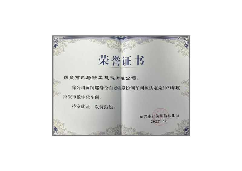 2013年起為了提升產品高質量生產,我司建立自動化改造團隊,并且自主研發自動化設備,2017年被評為規上企業,浙江省科技型企業。2018年評為國家高新技術企業,浙江省高成長科技型企業。2019年與海康威視合作自主研發AI智能視覺檢測設備,同時建立黃銅螺母數字化車間。2020年被評為諸暨市數字化車間。諸暨市數字化改造示范企業。2021年我公司結合前幾年的成果完成了兩化融合管理體系評定。2022年被評為紹興市數字化車間。我公司完善了GB/T23001-2017《信息化和工業化融合管理體系》的要求。在2022年-2027年我們將實現銷售額1.5億元,將云平臺連接現場人,機,料,法,環等各項數據,打通已有的信息化系統,對數據進行整治,編排,實現全方位數據透明,精益管理和智能制造。與客戶一起深度挖掘開放的工業互聯網世界。
